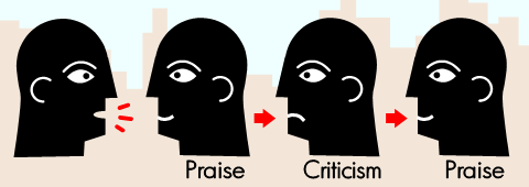 بإختصار: وبنفس فكرة الساندويتش نضع الانتقاد بين كلمتي مديح و كلام إيجابي، أي مديح نقد فمديح، وبهذه الطريقة نوصل للموظف نقدنا بدون أن نؤثر عليه سلبياً